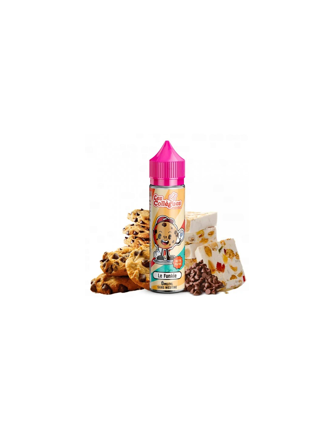 Découvrez l'e-liquide Le Funkie, une création gourmande de la gamme Les Collègues par Liquidarom. Ce savoureux e-liquide combine le goût irrésistible de cookies aux pépites de chocolat et de nougatine croquante, pour une expérience de vape à la fois douce et intense.