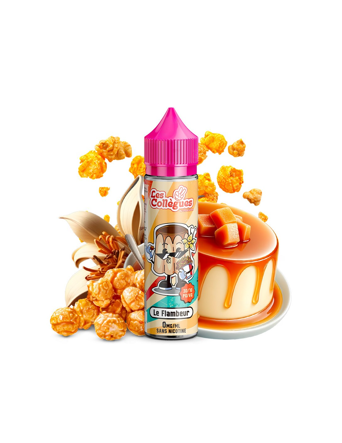 L’e-liquide Le Flambeur est l’une des créations de la gamme Les Collègues du fabricant français Liquidarom. Laissez-vous tenter par ce liquide qui recrée un flan fondant avec des arômes de custard vanillée, de caramel et un peu de pop-corn pour ajouter une note extra gourmande. Un véritable dessert à vaper qui saura séduire les amateurs et les amatrices du genre.