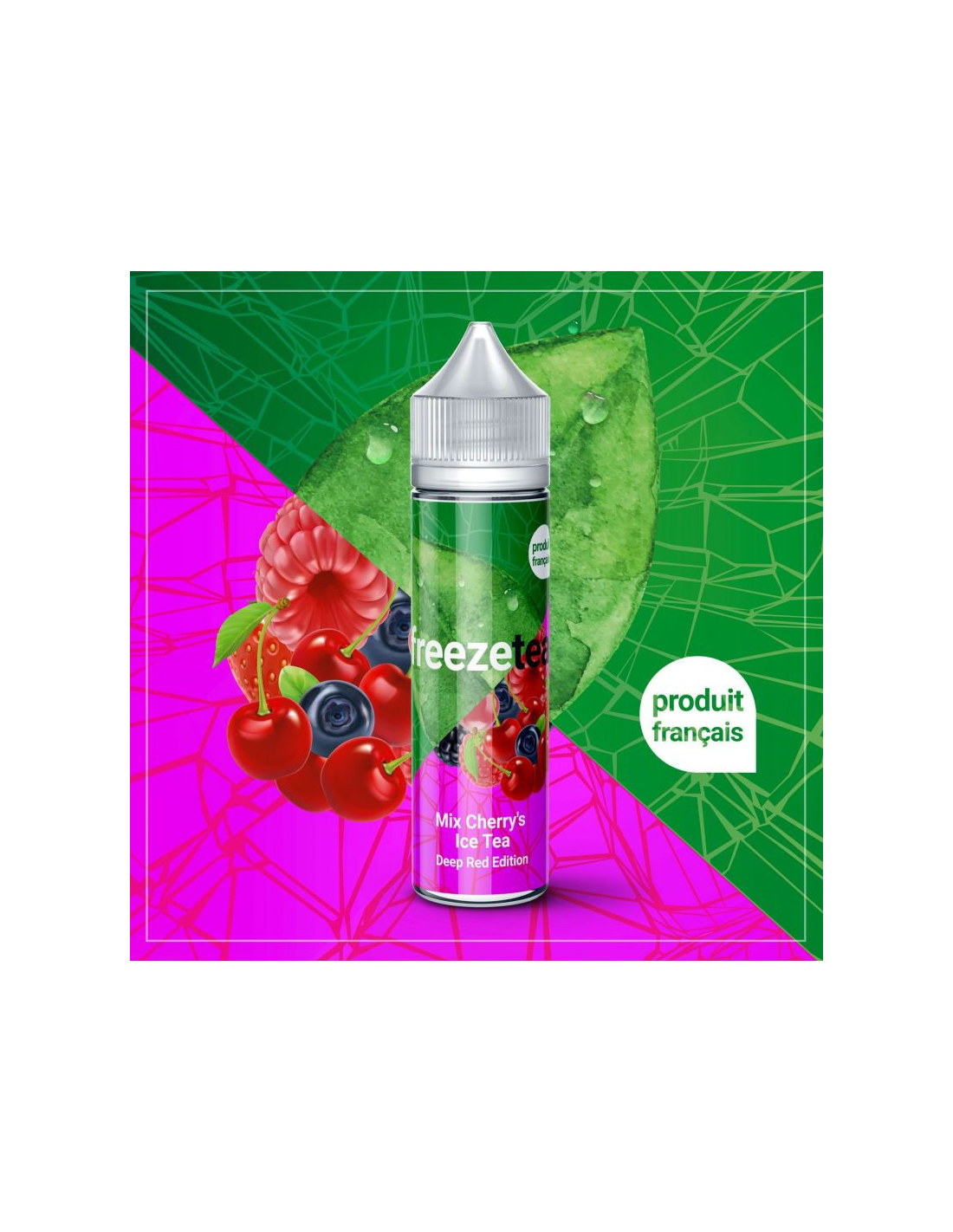 Made in Vape, con sede nel sud della Francia, ha il proprio laboratorio vicino alla capitale mondiale degli aromi: Grasse. I creatori francesi mettono a frutto il loro know-how e la loro passione per lo svapo per realizzare e-liquid di qualità, come la loro linea Freezetea, che comprende ricette di tè freddo con frutta fresca e un effetto di freschezza naturale a base di menta fresca. L'e-liquido Mix Cherry's ice tea è disponibile in un flacone unicorn da 60 ml contenente 50 ml di liquido ad aroma potenziato. Per ottenere la dose desiderata, è necessario diluirlo con booster di nicotina (1 booster per 3 mg/ml e 2 booster per 6 mg/ml). Il prodotto è inoltre dotato di un dispositivo di sicurezza a prova di bambino.
